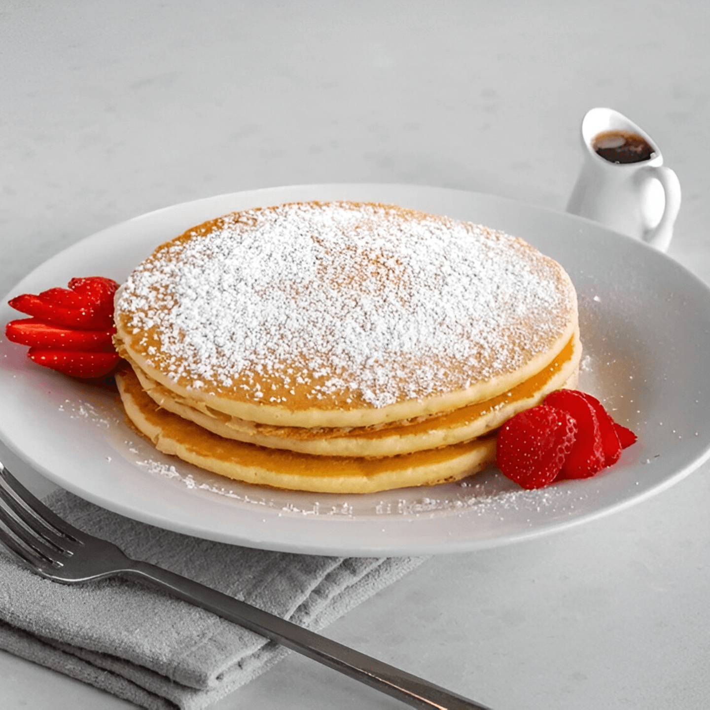 Our breakfast plate offerings also include fluffy buttermilk pancakes, with your choice of a three stack or five stack, and a combination breakfast plate of buttermilk pancakes, sujuk, and eggs for the ultimate morning combination.