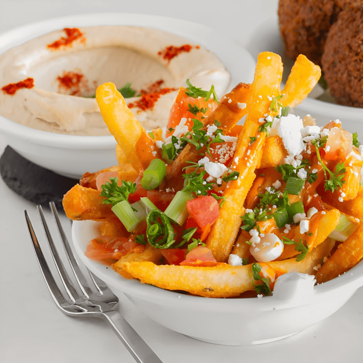 For hot vegan food appetizers, our organic french fries, and our traditionally spiced fried chickpea and fava falafels are a hit. Pair them with a traditional Lebanese vegan side of red pickled radishes and yellow banana peppers for a flavorful kick.