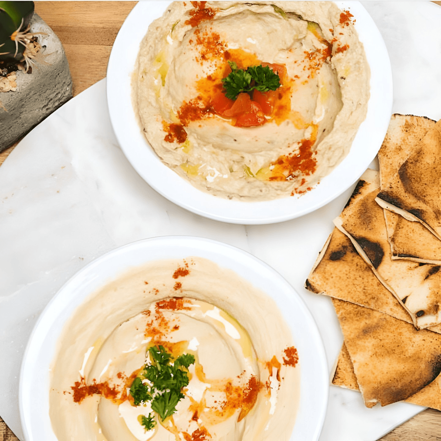For creamy vegan food, try our hummus, featuring Lebanese olive oil and tahini, or our moutabal, made with freshly smoked eggplants, Lebanese tahini and extra virgin olive oil, herbs and vegetables.